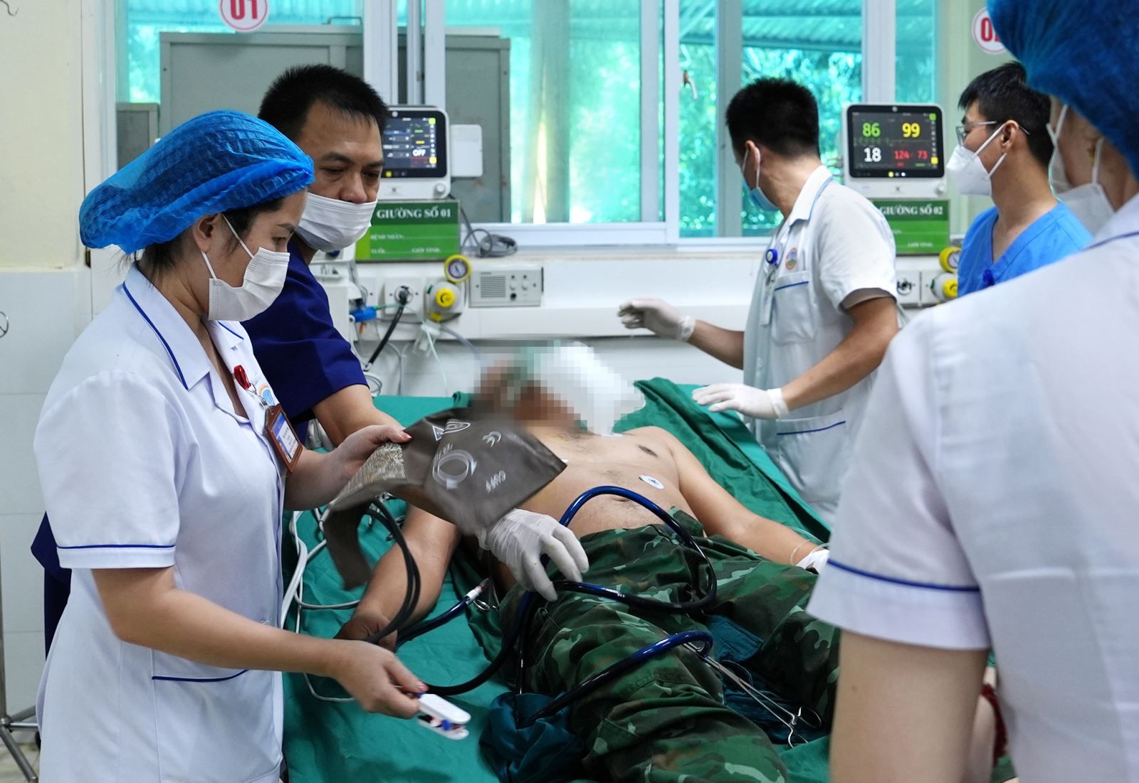 Khai thác tiền sử cho thấy, các bệnh nhân sau tai nạn có dấu hiệu đau ngực, khó thở liên tục, có vết thương ở vùng đầu. Sau khi vào viện được chẩn đoán ban đầu bị Đa chấn thương, tràn khí màng phổi, tim nhịp nhanh, phổi thông khí kém… các bệnh nhân đã được các Y, bác sĩ Bệnh viện khẩn trương tiến hành xử trí cấp cứu ban đầu và thực hiện các biện pháp chuyên môn trong quá trình theo dõi và điều trị.