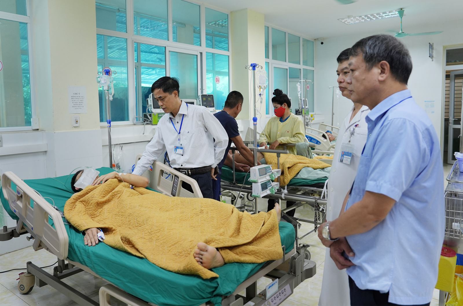 Thạc sĩ.BSCKII Phạm Văn Mẫn, Phó Giám đốc Sở Y tế động viên bệnh nhân và chỉ đạo Bệnh viện tiếp tục theo dõi diễn biến, tình trạng của các bệnh nhân.