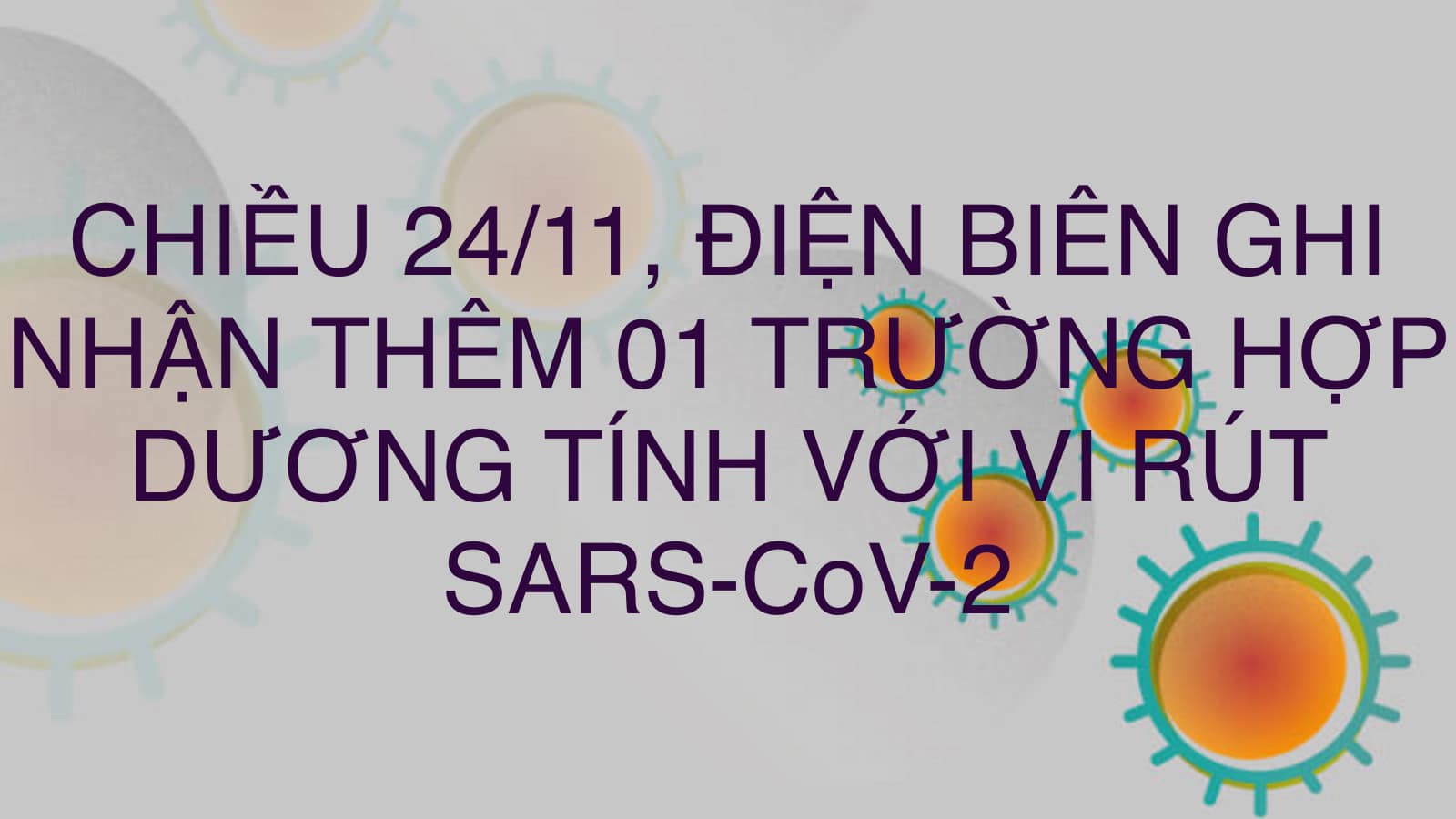 24/11/2021Tính từ 21h00 ngày 23/11 đến 13h50 ngày 24/11, trên địa bàn tỉnh Điện Biên ghi nhận thêm 01 trường hợp có kết quả xét nghiệm dương tính với vi rút SARS-CoV-2 tại thành phố Điện Biên Phủ.