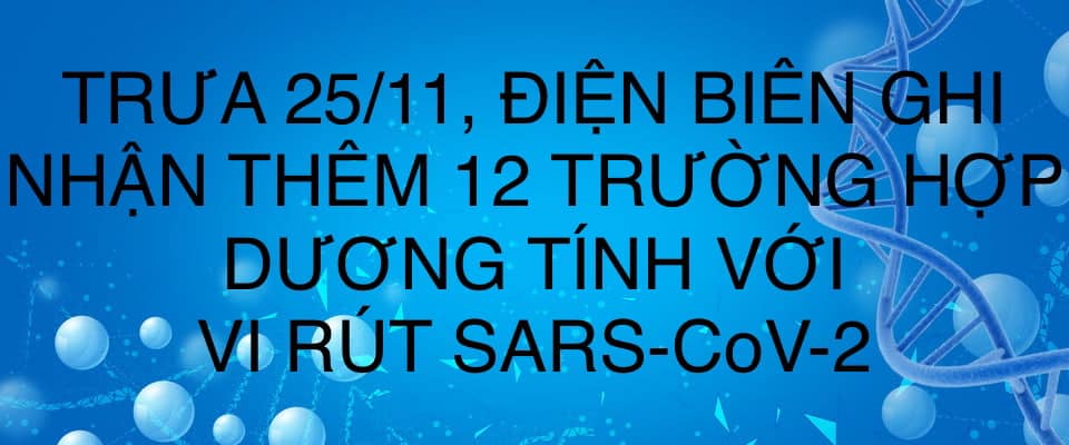 25/11/2021Tính từ 20h00 ngày 24/11 đến 11h30 ngày 25/11, trên địa bàn tỉnh Điện Biên ghi nhận thêm 12 trường hợp có kết quả xét nghiệm dương tính với vi rút SARS-CoV-2 tại thành phố Điện Biên Phủ và huyện Điện Biên Đông, tất cả các bệnh nhân ...