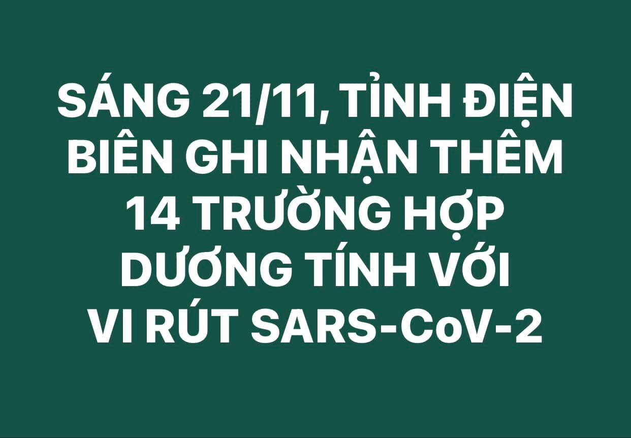 21/11/2021Tính từ 20h15 ngày 20/11 đến 10h15 ngày 21/11, trên địa bàn tỉnh Điện Biên ghi nhận thêm 14 trường hợp có kết quả xét nghiệm dương tính với vi rút SARS-CoV-2 tại thành phố Điện Biên Phủ, huyện Mường Nhé, huyện Điện Biên và huyện Tủa ...