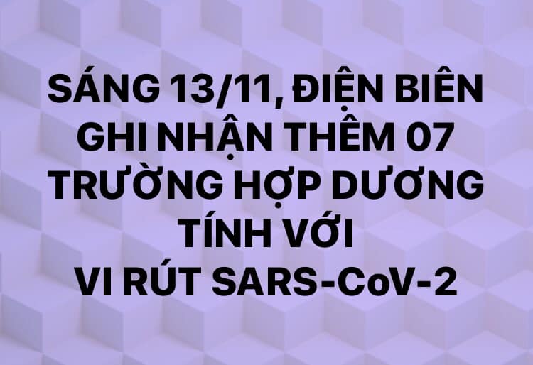 13/11/2021Hồi 07h00 ngày 13/11, trên địa bàn tỉnh Điện Biên ghi nhận thêm 07 trường hợp có kết quả xét nghiệm dương tính với vi rút SARS-CoV-2 tại khu cách ly tập trung xã Na Ư, huyện Điện Biên.