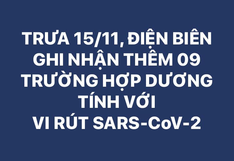 15/11/2021Từ 18h00 ngày 14/11 đến 11h00 ngày 15/11, trên địa bàn tỉnh Điện Biên ghi nhận thêm 09 trường hợp có kết quả xét nghiệm dương tính với vi rút SARS-CoV-2 tại thành phố Điện Biên Phủ, huyện Điện Biên và huyện Nậm Pồ ...