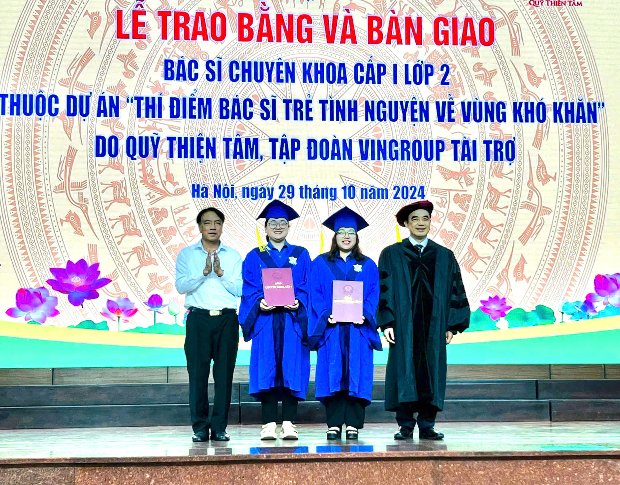 01/11/2024Ngày 29/10, tại Trường Đại học Y Hà Nội, Bộ Y tế tổ chức Lễ trao bằng tốt nghiệp và bàn giao bác sĩ chuyên khoa cấp I, lớp 2, thuộc Dự án “Thí điểm bác sĩ trẻ tình nguyện về vùng khó khăn” do Quỹ Thiện tâm và Tập đoàn V ...